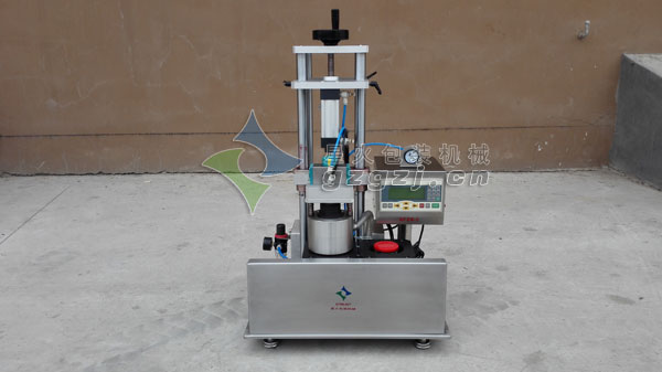 2、打開電源開關,將工作模式切換到手動狀態,以手動控制進行調式工作。是調節旋蓋頭的下壓高度1-2mm即可,觀察放瓶模具的密封性。放瓶模具為非標定做。