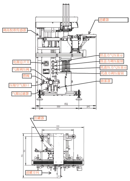 X30K 全自動真空旋蓋機包括:進出罐輸送、進罐器、出罐器、真空室、托爪、配蓋器、旋蓋頭等主要部件。